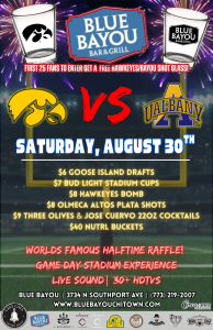 Hawk yeah, it’s football season! 🏈 Kick off the year in style as Iowa takes on Albany and Blue Bayou turns into the ultimate Hawkeyes gameday bar in Chicago. Be one of the first 25 fans through the door and score a free Blue Bayou x Hawkeyes shot glass—because nothing says school spirit like free glassware and Goose Island drafts.